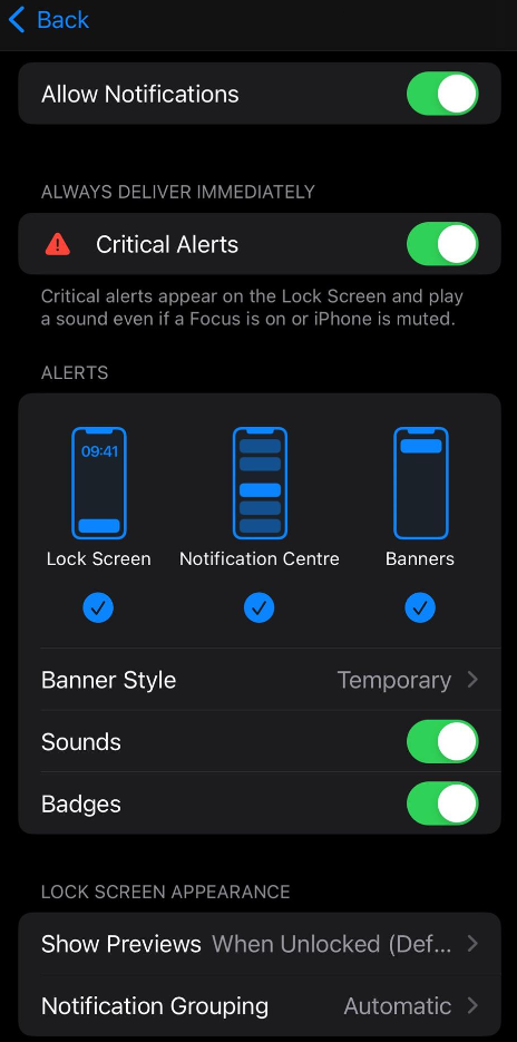Critical notifications were introduced with iOS 15. These are special notifications that can bypass the device's mute switch, "Do Not Disturb" settings or if you have set up a focus to send audible alerts in emergency situations.