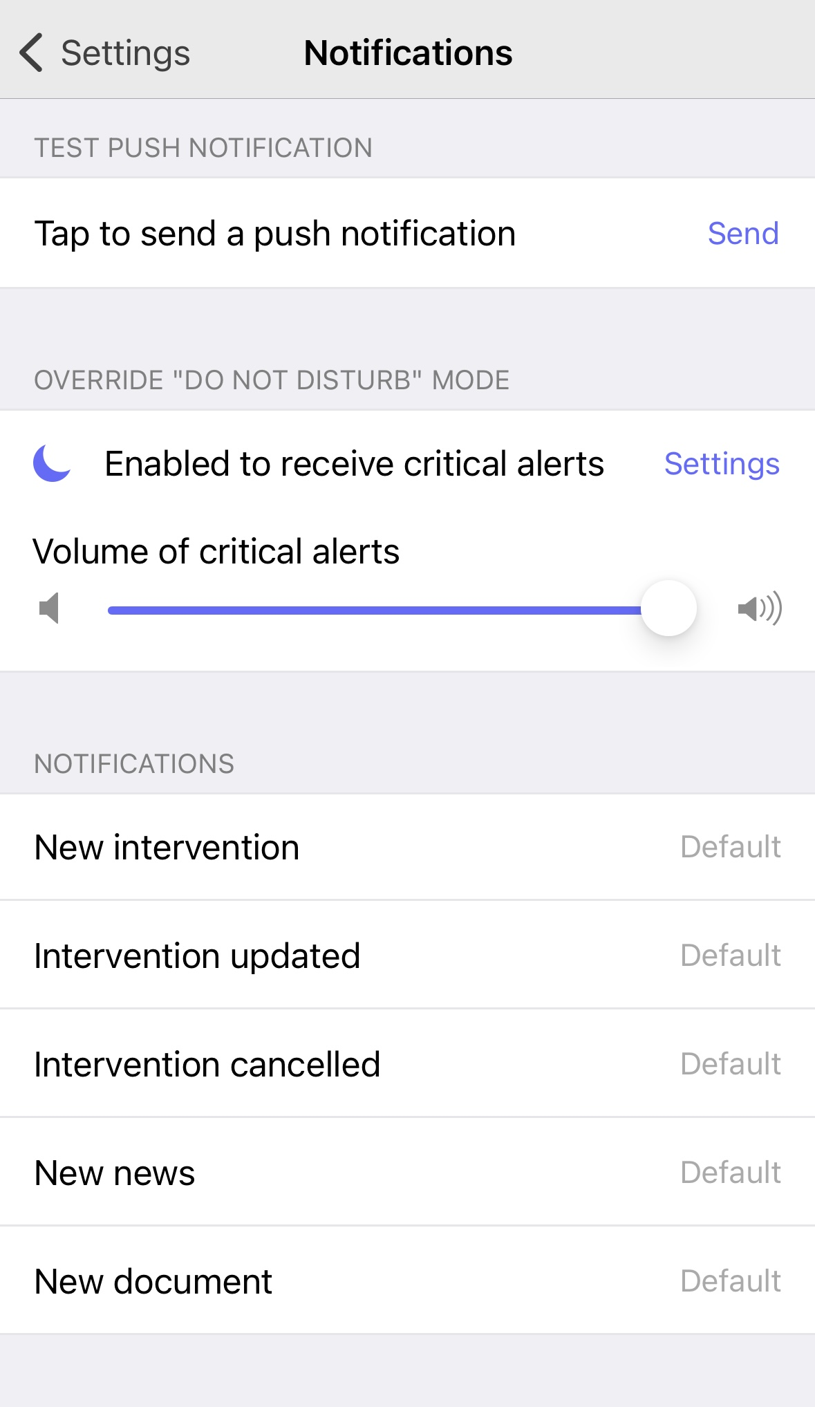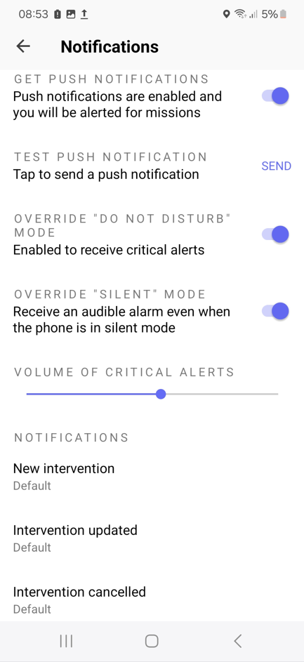 For alerting and important information on operations/mission you are informed by push notifications on your logged-in device such as smartphone or tablet. Depending on the type of the notification you can control and adjust how they are displayed as well as the volume of the notification. The following explains how the notifications can be managed on the most common operating systems iOS and Android.