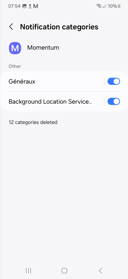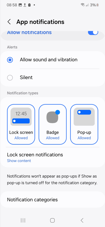Within the "Notification categories" you can switch on/off different types of notifications: