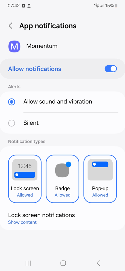 In Addition to the settings on your Android device, you can also adjust the notifications in the app itself in your profile.