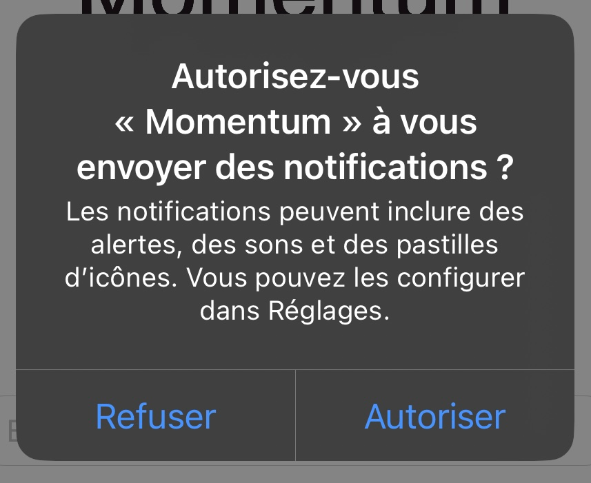⚠️ Note : La réception d'une notification push alors que l'application est ouverte n'affiche pas un popup de notification classique en haut de l'écran, mais un popup carré apparaît au centre de l'écran et le son n'est PAS reproduit.