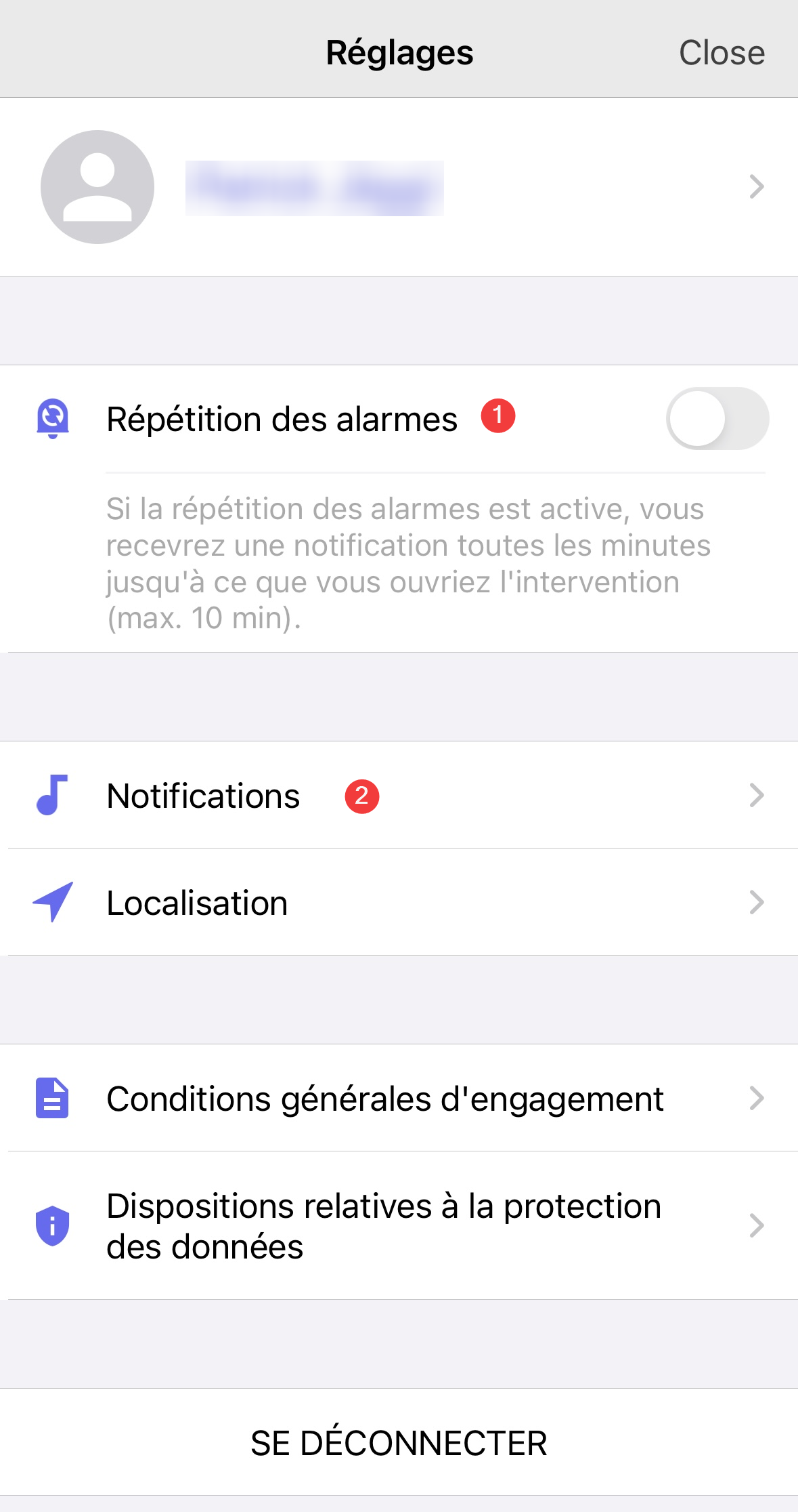 En plus des réglages sur votre appareil iOS, vous pouvez également ajuster les notifications dans l'application elle-même dans votre profil.