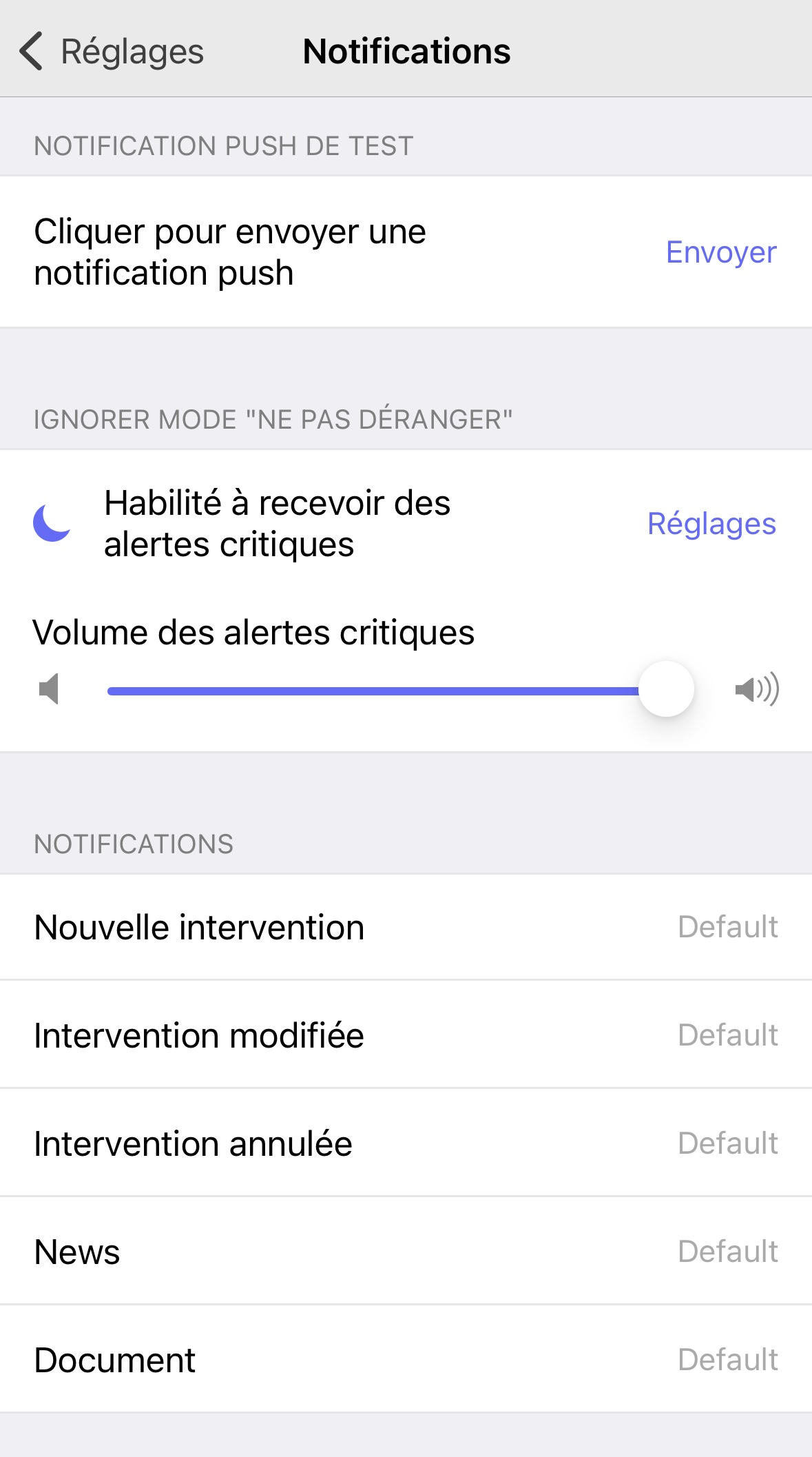 Dans les "Notifications", vous pouvez modifier le "Volume des alertes critiques" et changer le son des différents types de notifications.