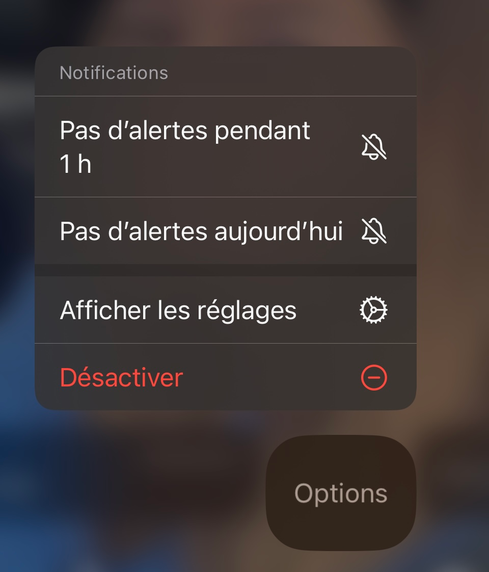 Conseil : si vous recevez une notification mais que vous ne voulez pas être distrait sur le moment, vous pouvez faire glisser la notification vers la gauche sur l'écran de verrouillage et cliquer sur "Options" :