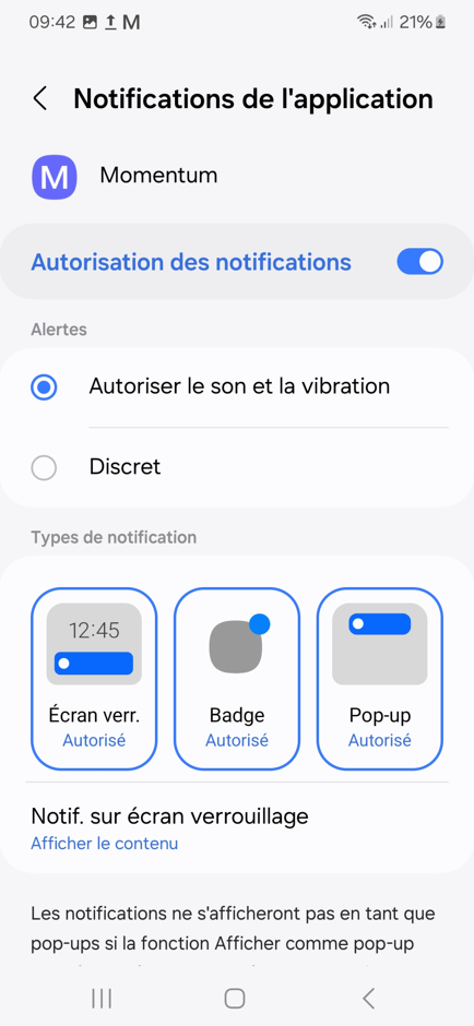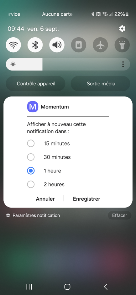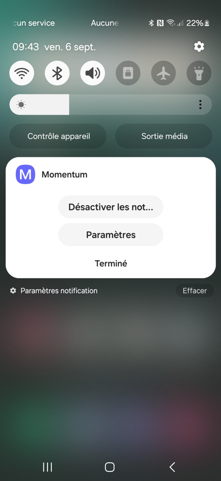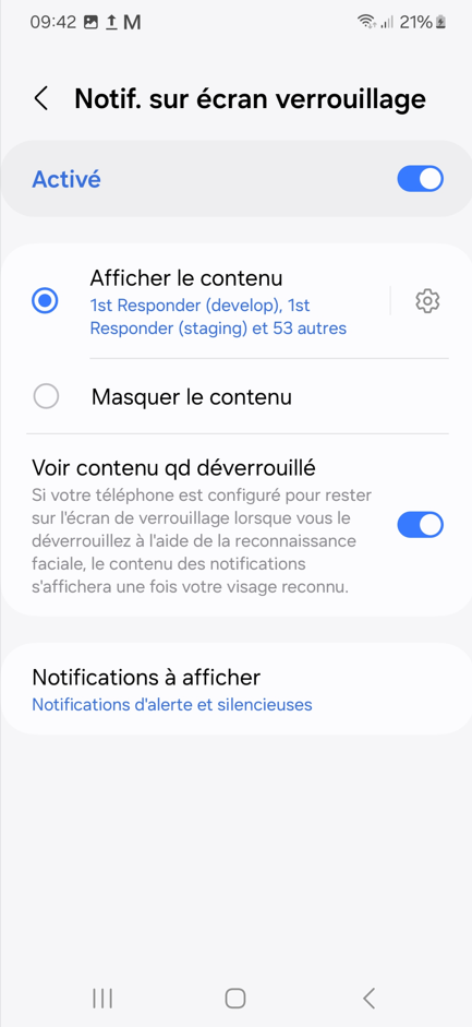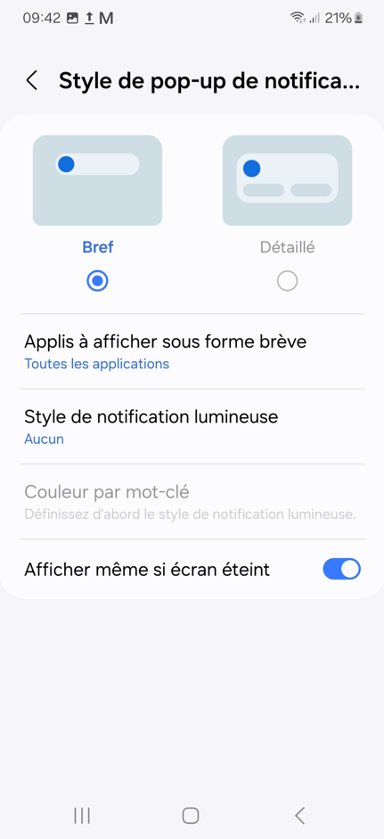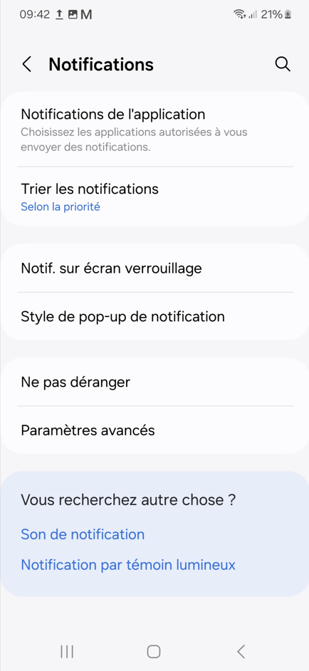 Sur votre appareil Android, dans le menu "Paramètres" puis "Notifications", vous pouvez généralement définir comment et quand les notifications sont affichées sur votre appareil :