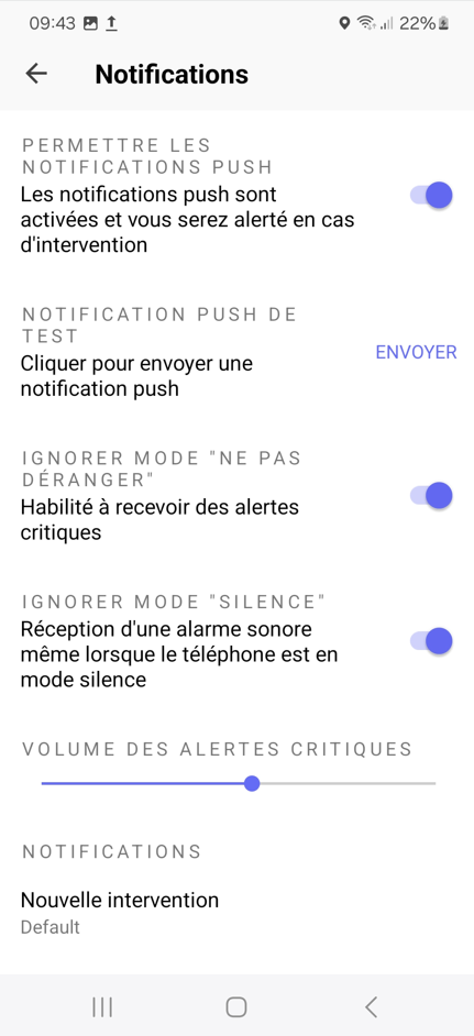 Dans les "Notifications", vous pouvez modifier le "Volume des alertes critiques" et gérer différents paramètres concernant les notifications de cette application.