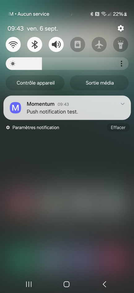 Si vous envoyez une "NOTIFICATION PUSH DE TEST", vous recevrez une notification test sur votre appareil :