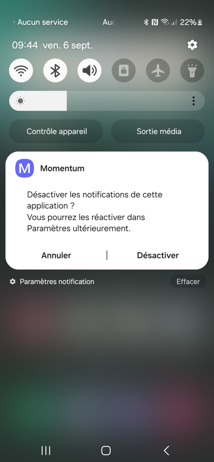 Si vous cliquez sur "Désactiver les notifications", vous obtenez les informations suivantes et devez confirmer votre choix :